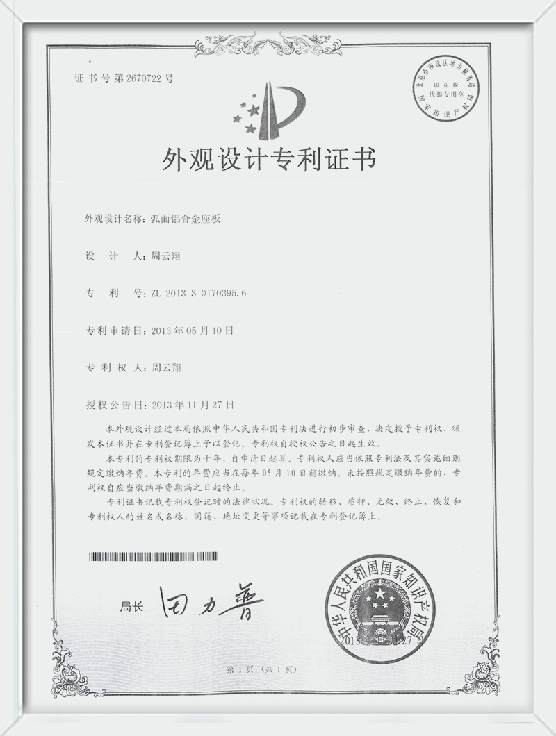弧面铝合金座板